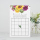 Rústicos girasoles boho y dahlias chiringuitos de juego de bingo en tonos de burdeos y colores solares.