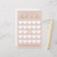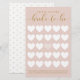 Diversión y elegante juego de bingo para despedida de soltera. Divertido juego para jugar en tu fiesta de despedida de soltera. El diseño presenta un diseño moderno y con estilo con una cuadrícula de bingo de corazón blanco. La caligrafía elegante en color dorado y la paleta de colores rosa crean un look chic moderno.