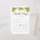 Lámina Bingo Game Card Lemon Bridal Shower Tema