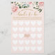 Elegante y sofisticado juego de bingo para despedida de soltera para la novia por casar. Divertido juego para jugar en tu fiesta de despedida de soltera. El diseño presenta un estilo moderno y elegante con nuestras rosas de color rosa claro pintadas a mano con acuarela y vegetación con una cuadrícula de bingo de corazón blanco. La caligrafía elegante en color dorado y la paleta de colores rosa claro crean un look chic moderno. Arte de Moodthology Papery.