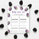 Carta de invitación a la ducha de bebé con ilustracion acuático de mora negra. El texto dice "un bebé dulce de berry está en camino". Elementos coincidentes disponibles.