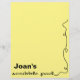 Diseño de bloc de garabatos con nombre personalizado en amarillo.