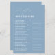 Diviértase en su ducha/soltera nupcial con este juego genial, con un elegante fondo azul y un texto editable. Personalizar si es necesario haciendo clic en "editar usando la herramienta de diseño".