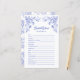 Mantén a los huéspedes entretenidos con este juego de palabras Blue Floral Bridal Shower. Con un encantador diseño floral en toile azul, es perfecto para una ducha de novia con fiesta de té, algo de temática azul o celebración de inspiración vintage. Una forma divertida y elegante de romper el hielo y poner en marcha al fiesta. Coincide con los objetos de nuestra colección de duchas nupciales Blue Floral Tea Fiesta Bridal para un aspecto más acogedor.