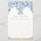 Lámina Blue Floral Cute Elephant Baby Name Race Game