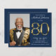 Invitación por cumpleaños número 80 de Blue Gold Photo Budget. Prepárate para una inolvidable fiesta de cumpleaños con esta elegante y sofisticada invitación. Con un sólido texto dorado que grita elegancia y clase, este diseño se trata de celebrar con estilo. La rica tipografía dorada destaca con audacia en un entorno refinado, haciendo que cada detalle del evento reaparezca con un toque de lujo. Es la manera perfecta de marcar la pauta para una celebración elegante y de gama alta que será épica. ¡Hagamos de este cumpleaños un hito para los libros!