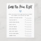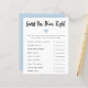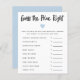 Tarjeta de juego para bebés moderna y sencilla con corazón azul. Los textos son editables. Juego perfecto para jugar durante la ducha. En él se enumeran los productos básicos para bebés y se pide a los clientes que adivinen el precio. ¡Quien adivine el precio gana más cerca!