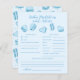 Típico tema de San Valentín ducha bebé predicciones y tarjeta de consejo con ilustraciones de macarones con forma de corazón azul. Un juego perfecto para jugar durante la ducha y sin duda será un gran placer. La tarjeta pide a los invitados que predigan cómo sería el bebé.