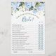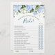 Lámina Blue Hydrangea Greenery Bridal Shower Game