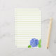 Papel de papel de color verde con una flor hidrangea en un suelo con una variedad de tonos azules sobre el pétalo floral y una sola mano de hoja verde aguacate pintada con acuarela. Puede eliminar las líneas si prefiere tener un papel sólido y puede cambiar el color del papel.
