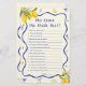 Haz que tu tema principal de la ducha nupcial sea extra divertido con esta ducha de novia con limón azul que conoce mejor a la novia! Con un diseño de limón fresco, este juego es perfecto para una celebración de limón con ducha de novia. Una gran adición a tu tema de la ducha de limón novia, le agrega risas y emoción a tu evento. Ideal para las ideas de ducha de novia con tema de limón, este juego también se adapta a las ideas de ducha de novia con tema italiano limón y a las ideas de ducha de novias de verano.