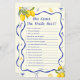 Haz que tu tema principal de la ducha nupcial sea extra divertido con esta ducha de novia con limón azul que conoce mejor a la novia! Con un diseño de limón fresco, este juego es perfecto para una celebración de limón con ducha de novia. Una gran adición a tu tema de la ducha de limón novia, le agrega risas y emoción a tu evento. Ideal para las ideas de ducha de novia con tema de limón, este juego también se adapta a las ideas de ducha de novia con tema italiano limón y a las ideas de ducha de novias de verano.