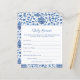 Juego de Baby Shower "Baby Guesses" (Cifras bebés) [para anotar predicciones de la fecha de nacimiento, altura y peso del bebé, etc.] en un elegante tema de Chinoiserie azul y blanco. Todo el texto es totalmente personalizable a sus necesidades.