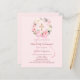 Blush pink background, decorated with watercolored pink and white flowers in a wreath and a golden cross. A pink bow. Personalize and add a name and details.