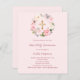 Blush pink background, decorated with watercolored pink and white flowers in a wreath and a golden cross. Personalize and add a name and details.