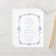 Transportar a sus huéspedes a una época de elegancia y romance con nuestra invitación a la Boda Floral Azul Victoriana. Inspirada por la opulencia de la época victoriana y adornada con delicados azules florales franceses, esta invitación exubera sofisticación intemporal. Diseñado con meticulosa atención a los detalles, el intrincado diseño floral y la tipografía de inspiración vintage crean una sensación de encanto y refinamiento del viejo mundo. Cada invitación es una obra de arte, que captura la esencia de una época pasada mientras celebras la alegría de tu día especial. Mediendo [dimensiones], nuestra invitación de alta calidad garantiza durabilidad y elegancia, marcando el tono perfecto para su celebración boda. Ya sea que esté planeando una gran aventura o una reunión íntima, nuestra Invitación a la Boda Floral Azul Victoriana invita a sus invitados a presenciar la unión del amor de la manera más encantadora. Acepte la belleza y el romance de una época pasada con nuestra exquisita invitación, y cree recuerdos que durarán toda la vida.