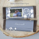 La marca multiusos boda de color gris azul es versátil para bares de caramelos, pasteles y muchos otros favoritos de fiesta. Los postres especiales o regalos para llevar a casa son hermosos con la foto de la novia y el novio y la redacción especial. El papel ligero de un presupuesto azul grisáceo es una buena alternativa para las barras de chocolate de la pareja y otros regalos para los clientes.