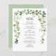 Este elegante menú rústico de boda cuenta con un delicado arco acuático de estilo eucalipto. El título y el texto aparecen en dos tipos de letra coordinados de sans serif grises. El reverso es verde pálido sólido.