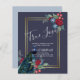 Hermoso pavo real con flores Verde azuladas y azules, borgoñas, hojas verdes saladas en este otoño, otoño, artículos de boda de invierno. Parte de una colección más grande que incluye invitaciones para bodas con presupuesto, guardar las fechas, confirmaciones de asistencia, tarjetas de fotos de agradecimiento, regalos para novias y fiestas de boda, y más. Para una planificación de bodas en invierno GRATUITA, visite weddingdesignchic.com.