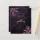 Esta elegante invitación de boda presenta ramos florales morados resaltados con follaje de lámina de rosa dorada falsa en dos esquinas, sobre una imagen de fondo de ágata de acuarela morada. El texto rosa rosa personalizable combina fuentes serif, itálica y manuscrita. El reverso proporciona espacio para los detalles de la boda, junto con un código QR que los invitados pueden escanear para visitar su sitio web y responder.