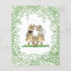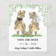 Deleite a sus invitados con esta divertida boda con tema de dinosaurios, novia y novio T Rex con follaje del bosque, guarde la fecha. Fácil de personalizar con los nombres de los novios y la fecha de la boda. Divertidas ilustraciones de T Rex novia y novio con tipografía moderna. Arte original único de la artista Catherine Sweetman
