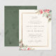 Celebra el amor sin compromiso con nuestra invitación a una boda asequible. La tipografía de la moda combina la caligrafía del serif con la del guión en un fondo beige, adornada con un falso borde dorado. La vegetación de invierno, con bayas, pinos y follaje, garantiza la elegancia y la asequibilidad.