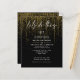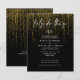Las invitaciones a una boda asequible no tienen por qué ser aburridas - las audaces cascadas de guirnaldas garland doradas brillantes por la página, en caligrafía escrita a mano es "hagamos esto" - las iniciales de la pareja en la parte superior - el resto del texto es simple y limpio - todo sobre un fondo negro. Papel elegante para bodas.