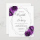 Esta elegante y moderna invitación a la boda tiene un marco geométrico de plata decorado con flores moradas y plateadas sobre un fondo blanco. El texto del personalizable combina la escritura manual caprichosa de color gris plateado, el copperplate y las fuentes cursivas. Añada detalles adicionales en la parte posterior, junto con un código QR para ayudar a sus huéspedes a visitar su sitio web boda.