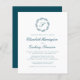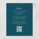 Este elegante diseño de invitación a la boda presenta un verde azulado monograma de escritura azul rodeado por una corona botánica de arte. Los nombres aparecen en escritura verde azulada, con el resto del texto en letra serif clásica. El reverso proporciona espacio para los detalles de los bodas sobre un fondo azul verde azulado sólido, junto con un código QR que los huéspedes pueden explorar para visitar su sitio web y RSVP.