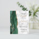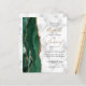 El borde izquierdo de esta elegante y moderna invitación a la boda incluye una acuarela de color verde esmeralda bordeada por un falso purpurina de oro. El texto del personalizable combina el guión de escritura a mano de color dorado con el copperplate negro y las letras cursivas sobre un fondo de mármol blanco y gris. Agregue detalles adicionales a la parte posterior, junto con un código QR para ayudar a los huéspedes a visitar el sitio web de su boda.