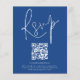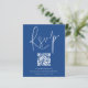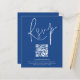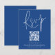 Presupuesto QR Código Script Boda Blue RSVP Una alternativa de valor para el dinero BUDGET en un tamaño menor de 4,5 x 5,6" peso semibrillante de 110 libras, que es de espesor similar al de una postal (sin embargo, no es adecuado para usar como postal). POR FAVOR, TENGA EN CUENTA QUE HAY UNA invitación por hoja . Un gabinete de opción conveniente para pedir a sus invitados que escaneen su código QR en su sitio web boda a RSVP. Una tipografía elegante en blanco para el título principal RSVP complementando el resto del texto que puede personalizar fácilmente.