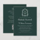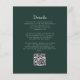 Este elegante diseño de invitación a la boda de inspiración vintage presenta un par de iniciales en monograma blanco con una fuente serif abierta por encima y por debajo de una línea divisoria y rodeado por una línea de arte acanthus escudo sobre un fondo verde oscuro del bosque. El reverso proporciona espacio para los detalles de los bodas sobre un fondo verde oscuro sólido, junto con un código QR que los huéspedes pueden explorar para visitar su sitio web y RSVP.