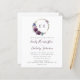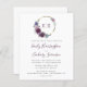 Este diseño boda presenta las iniciales del monograma de la novia y el novio en color púrpura oscuro enmarcadas por una corona de flores púrpura en un círculo dorado de imitación de Relieve metalizado. Personalice el texto con los nombres de la pareja en un elegante guión de escritura morada oscura y los detalles del boda en gris carbón. El reverso proporciona espacio para los detalles del boda sobre un fondo blanco sólido, junto con un código QR que los huéspedes pueden explorar para visitar su sitio web y RSVP, lo que ahorra el coste de imprimir y enviar por correo tarjetas RSVP separadas.