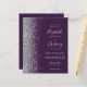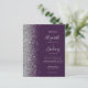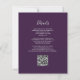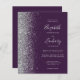 El borde izquierdo de esta elegante y moderna invitación a la boda incluye un falso borde purpurina plateado. El texto del personalizable combina la escritura a mano gris plateado pálido, el copperplate y las fuentes cursivas sobre un fondo morado oscuro. Añada detalles adicionales en la parte posterior, junto con un código QR para ayudar a sus huéspedes a visitar su sitio web boda.