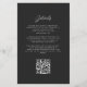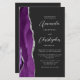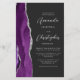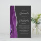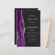 El borde izquierdo de esta elegante y moderna invitación a la boda incluye un borde de ágata color púrpura adornado con un falso purpurina de plata. El texto de personalizable combina guiones de color gris plateado y fuentes sans serif en un fondo fuera de negro. El lado inverso proporciona espacio para los detalles del boda en un fondo sólido de color negro, junto con un código QR que los huéspedes pueden explorar para visitar su sitio web y RSVP, lo que ahorra el coste de imprimir y enviar tarjetas RSVP separadas.