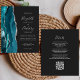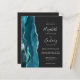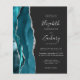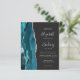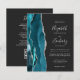 El borde izquierdo de esta elegante y moderna invitación a la boda incluye un verde azulado borde de ágata color azul azul adornado con un falso purpurina de plata. El texto del personalizable combina escritura a mano, copperplate y cursiva en gris plateado sobre un fondo fuera de negro. El lado inverso proporciona espacio para los detalles del boda en un fondo oscuro sólido, junto con un código QR que los huéspedes pueden explorar para visitar su sitio web y RSVP, lo que ahorra el coste de imprimir y enviar por correo tarjetas RSVP separadas.