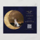 Una minimalista y moderna invitación a celebrar bodas celestes presenta un diseño sencillo y elegante. Incluye una luna de Relieve metalizado dorada y estrellas que brillan suavemente, con un fondo azul medianoche. La invitación utiliza la tipografía serif clásica, que añade un toque tradicional y formal con su estilo limpio y claro.