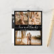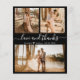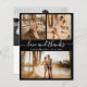 Boda Letrado de Mano Blanca, Negro, Moderno, Elegante (3) Tres Collages de fotos Gracias Cartas. Elegante plantilla de tarjeta de agradecimiento boda con tres fotos en la parte delantera y una en la parte posterior. Con el texto "Amor y gracias" en una letra de escritura tipográfica con letras a mano rápida con toques de color blanco sobre fondo negro. Personalice el nombre personalizado y el mensaje de agradecimiento. Pequeña forma de corazón entre los nombres. Si prefiere escribir a mano la nota, simplemente elimine el texto de ejemplo para hacer más espacio. Si necesita ayuda o un elemento que coincida, póngase en contacto con el diseñador.