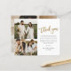 Esta tarjeta de agradecimiento de este collage de fotos moderno y económico incluye un guión dorado gracias, un mensaje personal y 3 fotos en la parte delantera. La parte posterior incluye una cuarta foto que es una foto horizontal de sangría completa. Haga clic en editar para personalizar de este diseño.