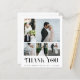Minimalista moderna y de moda tipografía audaz presupuesto boda asequible seis pareja de nombres de collage de fotos y mensaje texto personalizado de texto de agradecimiento a la plantilla de tarjeta de corazón. Fácil de personalizar en ambos lados con tu texto e imágenes.
