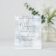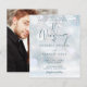 Una invitación de boda elegante y económica que presenta una tipografía de caligrafía chic y delicados copos de nieve que caen sobre sus nombres personalizados, fecha especial y detalles del evento de celebración de la boda en un fondo de escarcha de invierno y su foto especial en el reverso. Diseñado por Thisisnotme©
