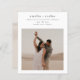 Una invitación de boda económica, moderna y minimalista con dos de tus fotos favoritas de compromiso. La parte delantera de esta tarjeta muestra sus nombres y fecha boda en tipografía clásica en blanco y negro. La primera foto aparece debajo. Las tarjetas se convierten en una segunda foto de tu elección, cubierta con un overlay blanco semitransparente para hacer que el texto de la invitación sea realmente pop! Los detalles del evento se escriben en una elegante combinación de letras elegantes de guión de moda y de serif. Hemos escogido dos fotos con un bonito esquema de colores desérticos, pero este diseño blanco y negro seguro que funciona con colores bodas. Si desea cambiar los nombres para mostrar un color boda, cambiar los tipos de letra, puntuación o ubicación utilizados para los elementos de texto en la parte delantera y trasera de este diseño, simplemente haga clic en "Personalizar" y "Editar usando la herramienta de diseño" para acceder a las opciones de edición avanzadas. También puedes borrar la foto al fondo de esta invitación si solo quieres mostrar una. Como parte de la selección presupuestaria de Zazzle, esta hoja no es un tamaño de invitación estándar ni una calidad de papel. Si quieres este diseño en una tarjeta de invitación, puedes encontrarlo en nuestra tienda o usar la Máquina Zazzle Make para transferirlo al producto de tu elección. Si necesitas una mano con algo o quieres trabajar conmigo en un pedido personalizado, ¡siéntete libre de enviarme un mensaje a través del botón de abajo! Asegúrese de contactarme antes de comprar ya que no puedo editar un pedido existente. Revisa nuestra tienda para otras opciones de papel y más diseños bodas!
