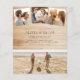 Diseño económico, rústico y moderno de la invitación a la boda incluye una gran foto vertical en la parte delantera sobre sus nombres en cursiva en minúscula itálica con una elegante ampersand y la fecha de su boda contra una imagen de una casa de campo de madera beige. Las tarjetas pasan a tres fotos cuadradas en la parte superior, la tipografía boda clásica en el medio y una foto horizontal en la parte inferior de la misma madera. boda de madera minimalista con collage de 5 fotos. Para nuestras fotos de plantilla, elegimos un esquema de color neutro en tierra de azul pálido, blanco y beige, pero este diseño versátil se hizo pensando en la personalización y seguro que se verá bien con cualquier combinación de colores. Haga clic en "Personalizar esta plantilla" para cambiar el texto y cargar sus propias fotos. Si desea editar fuentes, ubicación o colores, simplemente desplácese a "Clic para más personalizares" y utilice la herramienta de diseño de Zazzle. Como parte de la selección presupuestaria de Zazzle, esta hoja no es un tamaño de invitación estándar ni una calidad de papel. Si quieres este diseño en una tarjeta de invitación, puedes encontrarlo en nuestra tienda o usar la Máquina Zazzle Make para transferirlo al producto de tu elección. Siéntase libre de contactarme a través del botón de abajo para cualquier pregunta relacionada con el diseño. Visita nuestra tienda para más invitaciones!