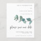 Una alternativa de valor por dinero BUDGET en un tamaño menor de 4,5 x 5,6" de peso semibrillante de 110 libras, que es de espesor similar al de una postal (sin embargo, no es adecuado para usar como postal). POR FAVOR, TENGA EN CUENTA QUE HAY UNA invitación por hoja. Boda De Guión De Eucalyptus Presupuestada Guarda La Fecha. Estilo minimalista moderno con una sola rama de hojas de eucalipto azul verde azulado que provienen del lado derecho y un guión conjunto informal para Guardar nuestra fecha. personalice fácilmente el resto del texto a sus detalles.