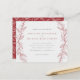 Celebra tu boda al aire libre con estilo con nuestras invitaciones botánicas a la boda. Con una combinación de colores rojo y gris claro. Una corona dibujada a mano rodea los detalles de su boda en una tipografía mínima del suero. Revertir a un color de fondo rojo con un patrón de hoja. Perfecto para las celebraciones de bodas de otoño. Como parte de la selección del presupuesto en Zazzle, estas invitaciones vienen en tamaños limitados y reservas de papel. Si necesita un tamaño o material de papel diferente, este diseño se puede transferir a un formato estándar 5x7 utilizando la herramienta de transferencia de diseño para más opciones.