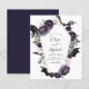 El presupuesto de Halloween el 31 de octubre Invitaciones a la boda verde y púrpura del otoño a la acuarela oscura - incluye tipografía de escritura aterradora y escalofriante y elegante con flores modernas y alas murales para la celebración especial del Día de la Boda Sombrerosa.