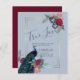 Hermoso pavo real con flores Verde azuladas y azules, borgoñas, hojas verdes saladas en este otoño, otoño, artículos de boda de invierno. Parte de una colección más grande que incluye invitaciones para bodas con presupuesto, guardar las fechas, confirmaciones de asistencia, tarjetas de fotos de agradecimiento, regalos para novias y fiestas de boda, y más. Para una planificación de bodas en invierno GRATUITA, visite weddingdesignchic.com.