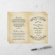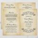 Los torbellinos y floridos negros decoran este elegante diseño de hojas de boda de tipografía vintage. El fondo rústico de marfil está impreso con un papel de pergamino envejecido en textura. Personaliza el texto del personalizado para tu fiesta nupcial, información de la ceremonia y mensaje de agradecimiento. Nota: estos programas de peso de texto llegan planos y requieren plegado para ensamblar.