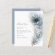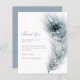 Una alternativa de valor por dinero BUDGET en un tamaño menor de 4,5 x 5,6" de peso semibrillante de 110 libras, que es de espesor similar al de una postal (sin embargo, no es adecuado para usar como postal). POR FAVOR, TENGA EN CUENTA QUE HAY UNA por hoja. Boda De La Pluma Del Pavo Real Gracias. Una elegante pluma de pavo real de estilo vintage en tonos azules y verde azulados recorre el lado derecho y las palabras están alineadas a la izquierda. Personaliza fácilmente el texto. Un azul polvoriento de coordinación está en la parte trasera.