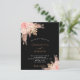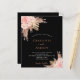 Para un boda moderno de estilo boho. Un elegante fondo negro. Decorada con rosa de oro y flores rosadas, rosas y pampas. Personalice y agregue nombres y detalles.